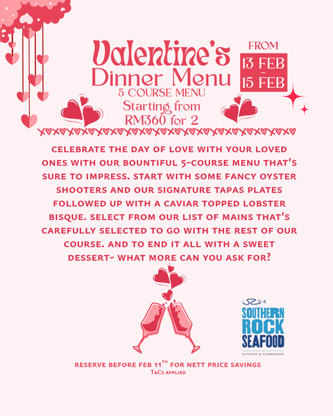 This Valentine’s Day, indulge in an intimate 5-course seafood journey crafted for romance.