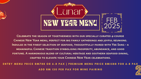 Welcome the Lunar New Year with an indulgent dining experience curated for festive gatherings and joyful reunions. Our Lunar New Year Set Menu showcases premium seafood, comforting classics, and celebratory flavours — perfect for sharing with family and friends.